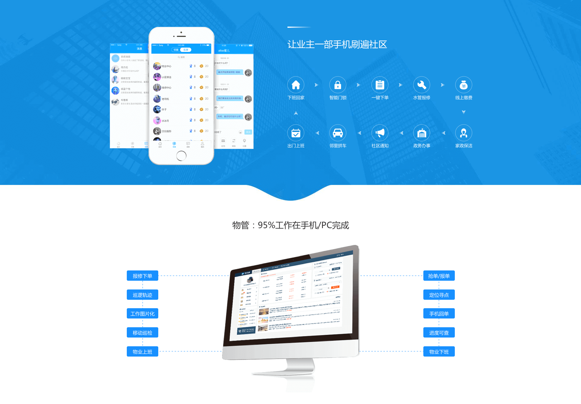 支持多行业多场景,覆盖多种社区物业O2O范围